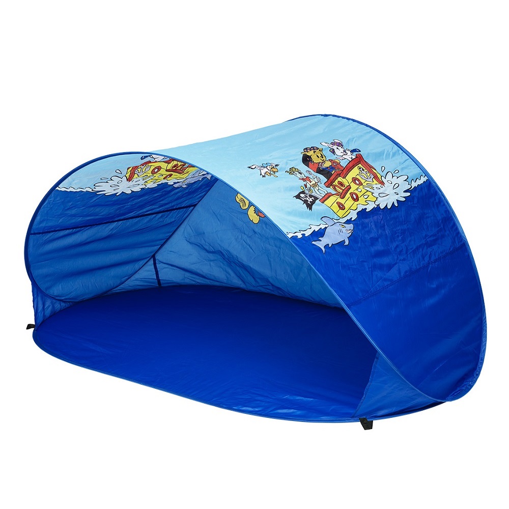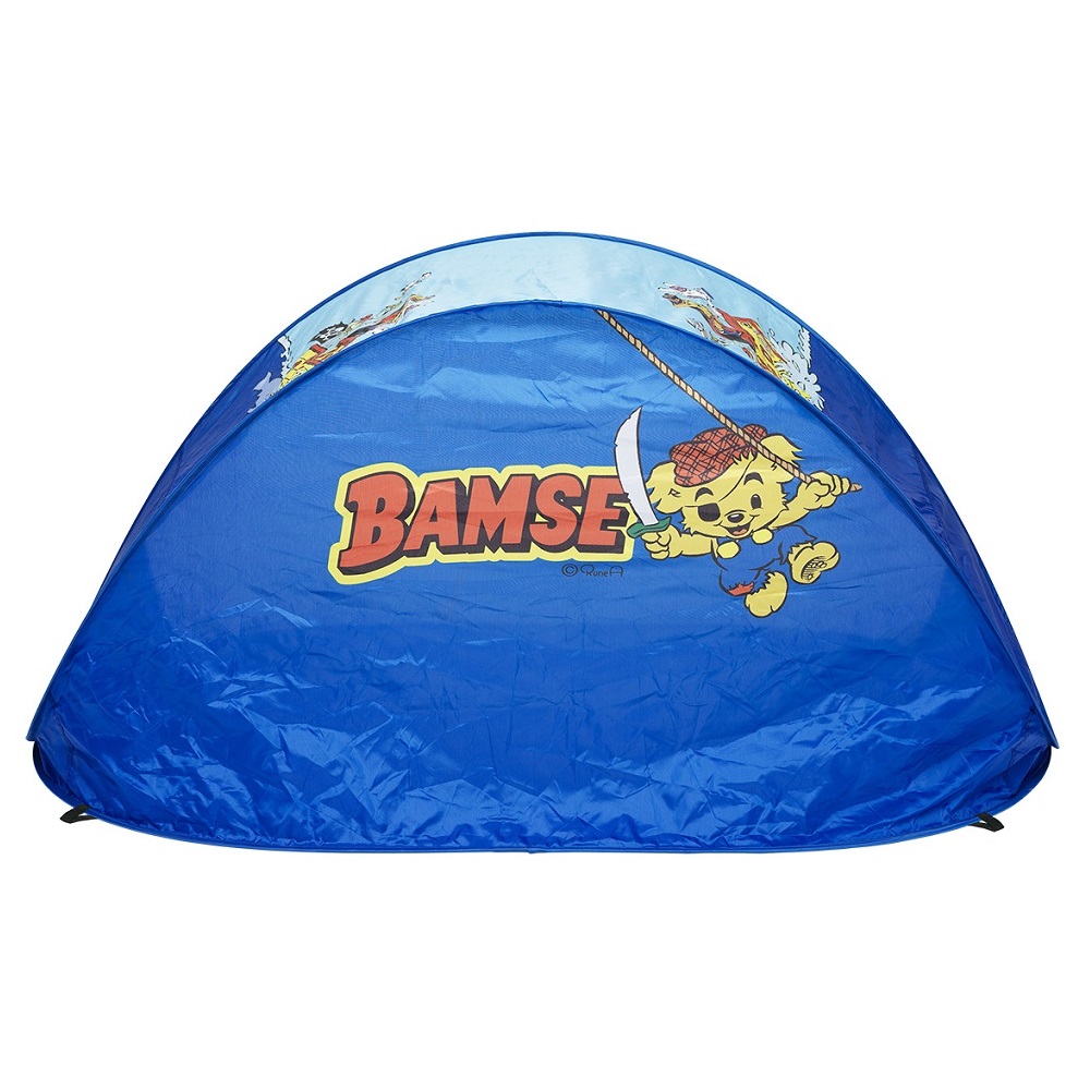 Swimpy Bamse is a spacious and stable sun shelter beach tent (UV tent) for sunny days on the beach or in the home garden. Easy to fold up and take down in pop-up technology. When the tent is not in use, it is packed in the accompanying transport bag. The sun tent can be attached to the ground with the fastening loops on the tent side with tent pegs (purchased separately) for windy days. The sun tent has UV protection UPF 50+ and provides nice shade on the beach.