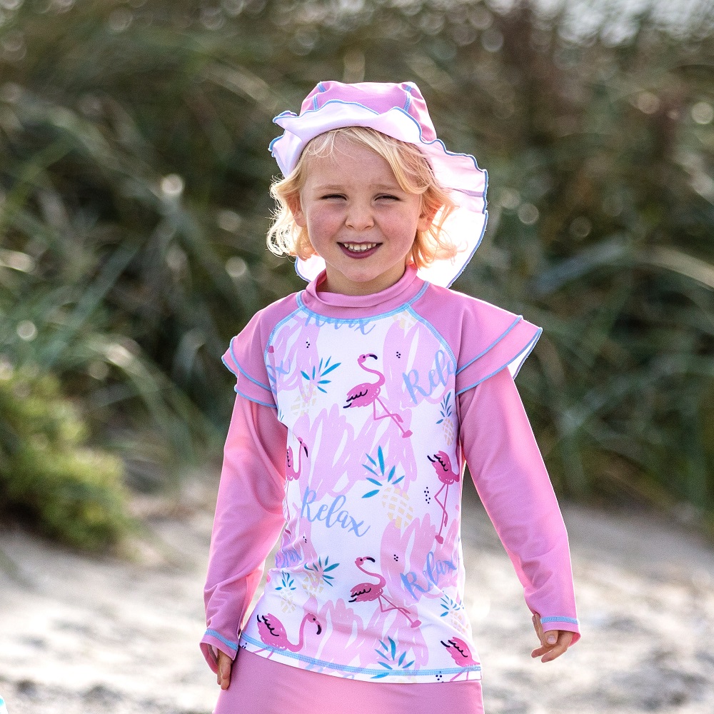 Children's set with Rash Guard and UV Swim Shorts - Flamingo