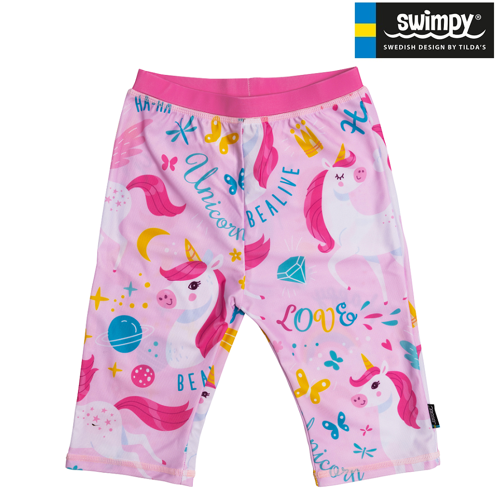 Swimpy Unicoern are comfortable, stylish and protective UV swim shorts for children. The swim shorts, which protect against the sun's dangerous UV rays, are made of soft and flexible material in clearly visible colors. Swimpy sun protection clothing is functional for swimming and beach life both on holiday and on the home beach.