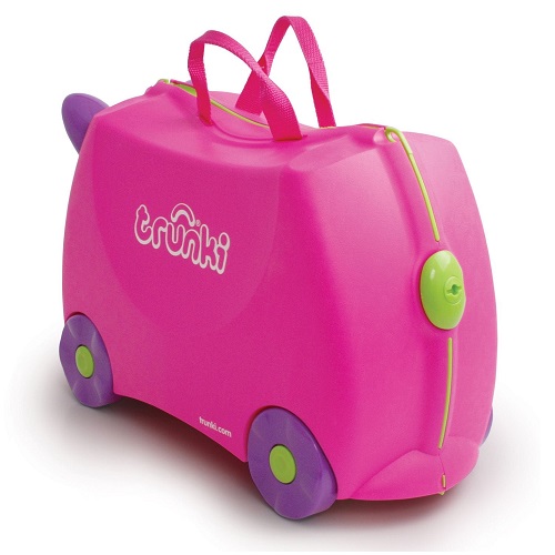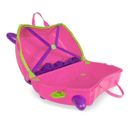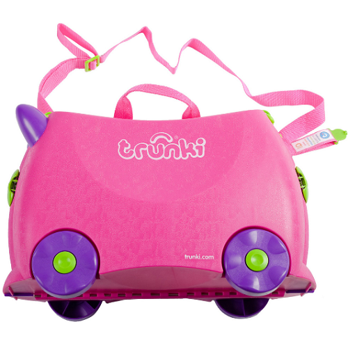 Fun, practical and award-winning ride on suitcase for children from Trunki. The suitcase Trunki Trixie has a comfy saddle to rest tired legs and to play with while waiting at the airport. Trunki suitcases are lightweith and durable (carries up to 50 kg), has horn grips for stability, a tow and carry strap and a carry handle. Inside the suitcase (18 liters of luggage space) there is lots of space for toys, games, teddy bears and snacks. As the size of Trunki suitcases fits within the IATA regulation of handlugage, the suitcase can be taken on board the aircraft (however, check what rules apply to your airline).