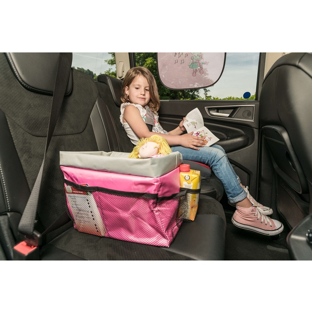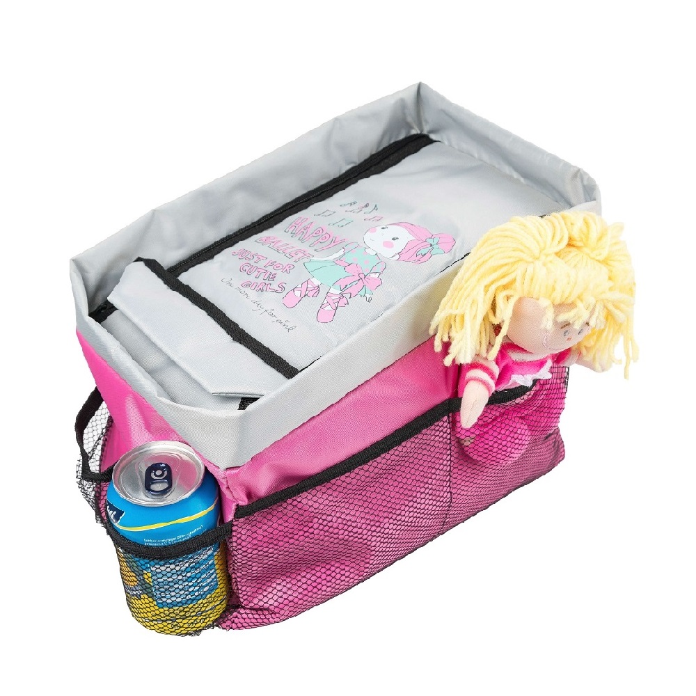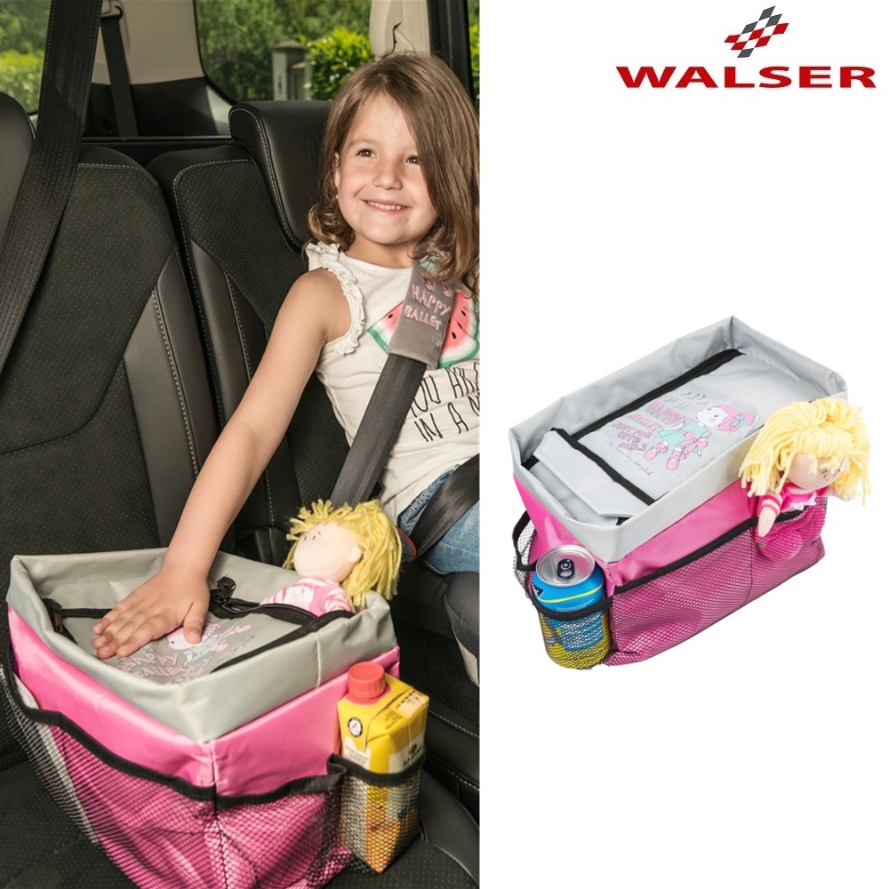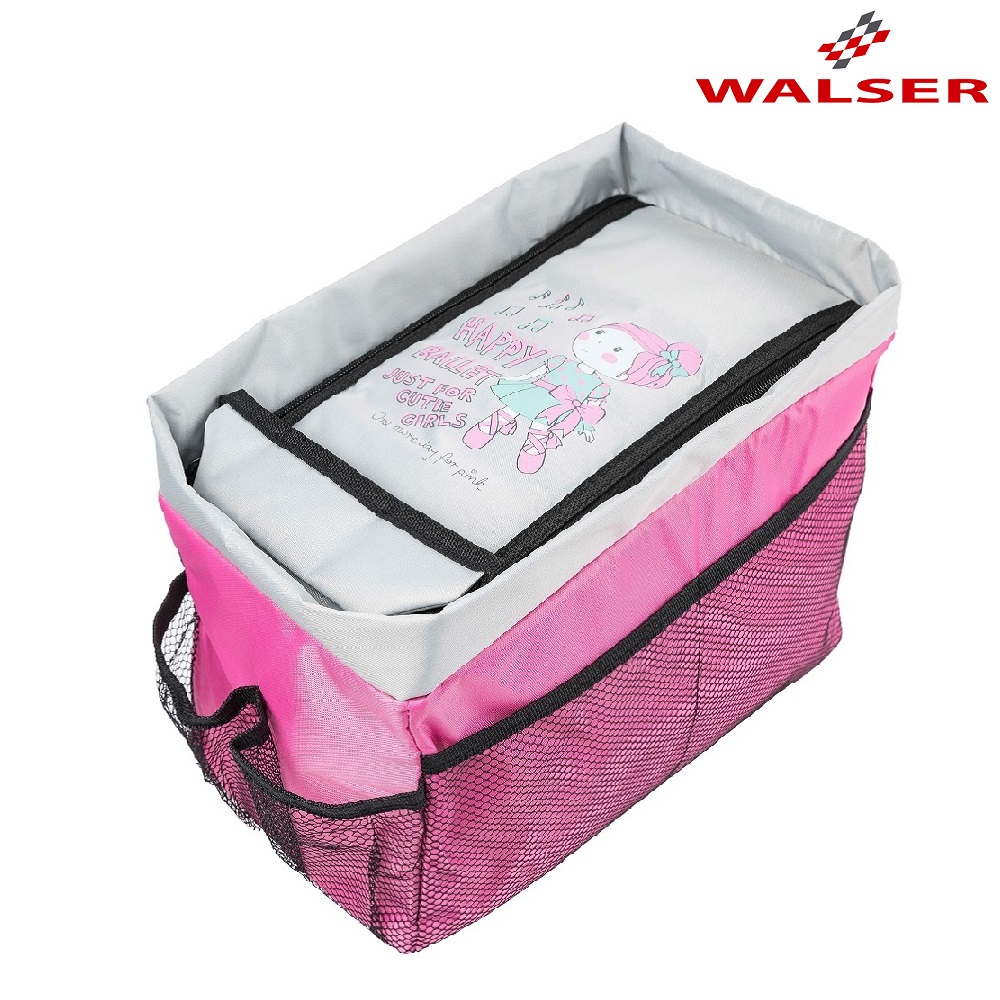 Walser Backseat Organizer Happy Ballet is a practical and foldable car organizer intended foor all the children's things in the back seat. Spacious main compartment with space for toys, snacks, books and magazines. Outer compartments in nets for bottles and mugs. Easy to clean and can be folded when not in use.