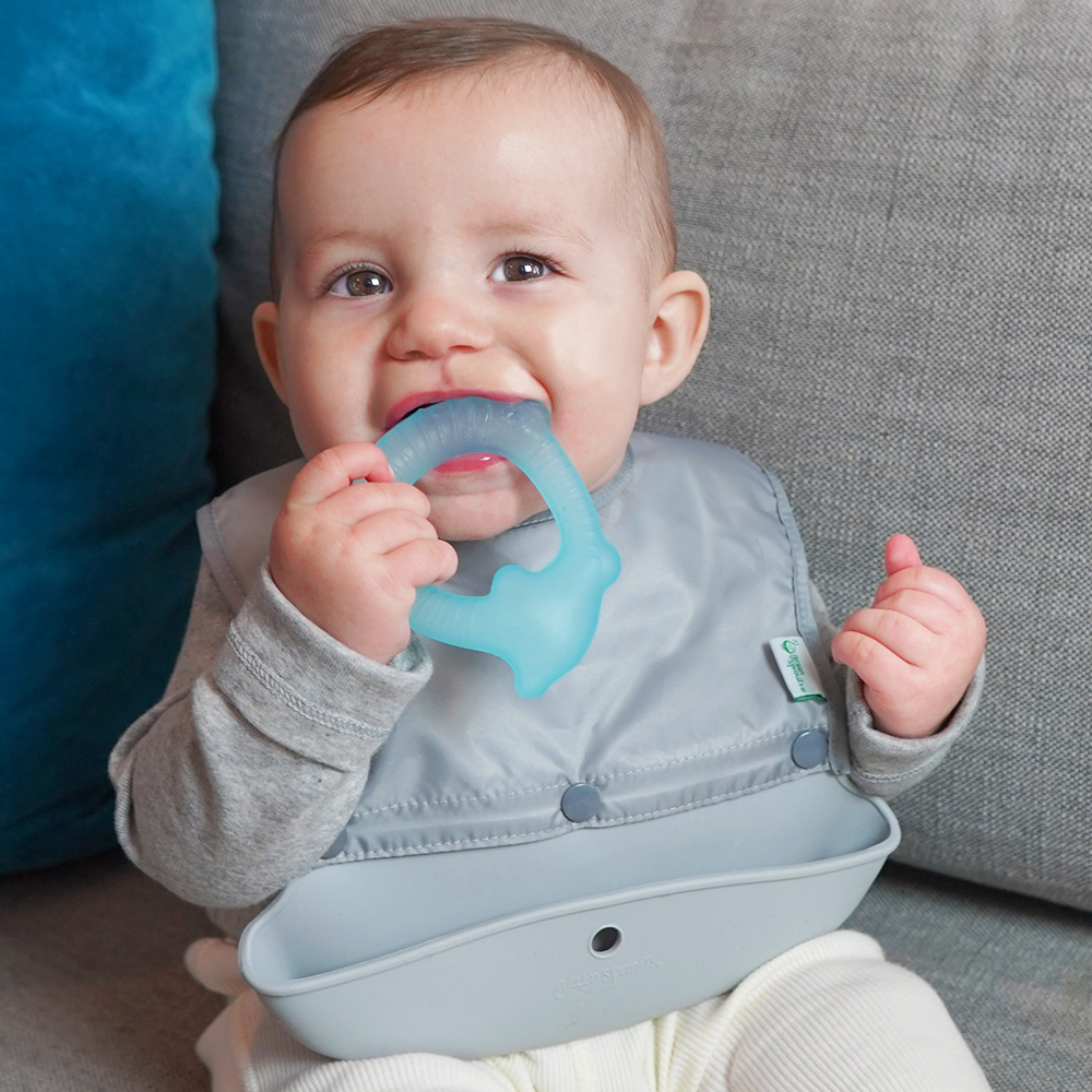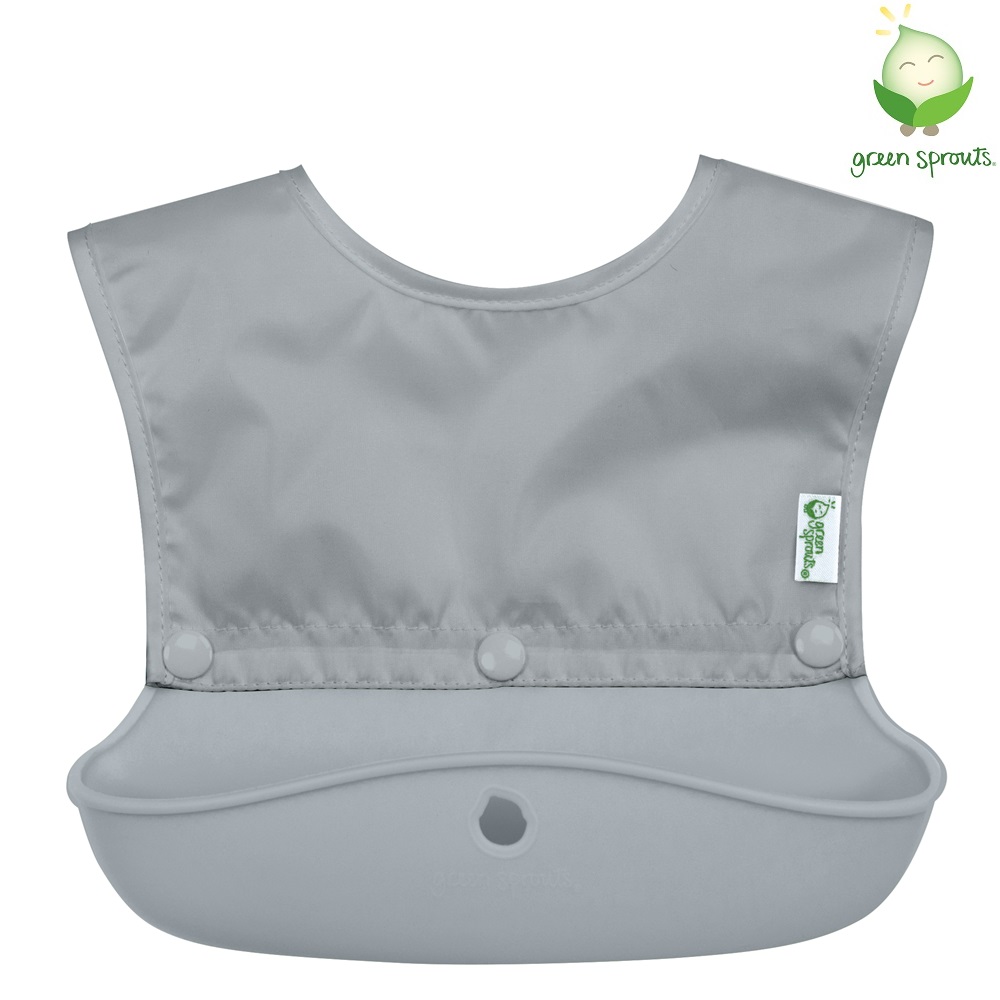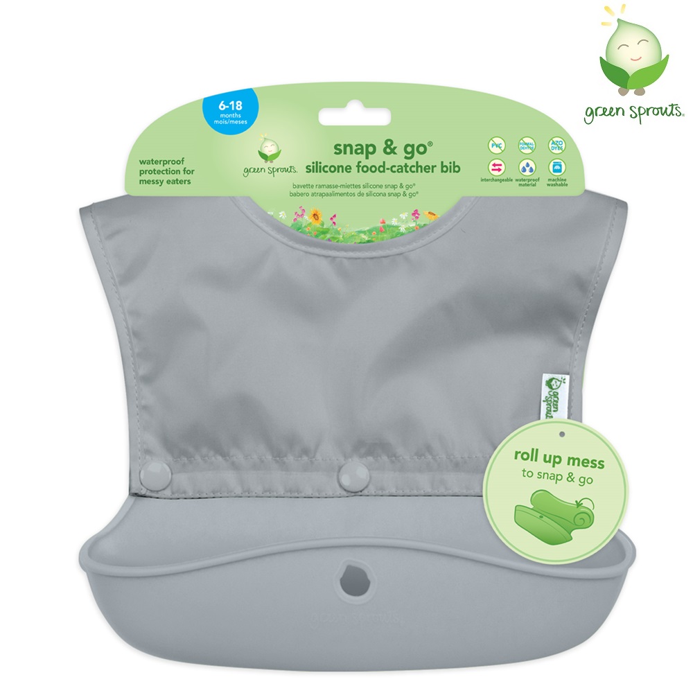 Green Sprouts Snap & Go Gray is a practical and smart bib. After feeding, the bib is simply rolled up and fastened so that the contents do not spill out. This means that the bib does not need to be washed immediately after use, but can be taken home and be cleaned. The bib has a collector in food-approved silicone. The upper part, which is removable, is made of waterproof material. The upper part can be washed in a washing machine while the collection pocket is washed separately. Green Sprouts Snap & Go has curved sides so that the bib follows the child's movements. In short, a smart and practical bib for easy use and cleaning that is just as good to take with you on the trip as it is for home use. Take the bib with you in your hand luggage, purse or diaper bag.