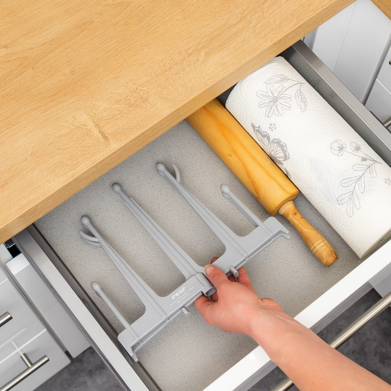 Reer Drying Stand is a smart foldable drying stand for baby bottles, which is practical to use both at home and when you are away from home, for example when travelling. A hygienic and easy way to dry washed baby bottles, pacifiers, cups and other baby food accessories. The drying rack has nine branches for bottles and mugs and several smaller hooks, for example for pacifiers. The Reer Drying Rack is foldable and can therefore be put in the dishwasher and, if necessary, stored in a kitchen drawer or in your luggage. The product is made of materials that are free from PVC, BPA and phthalates.