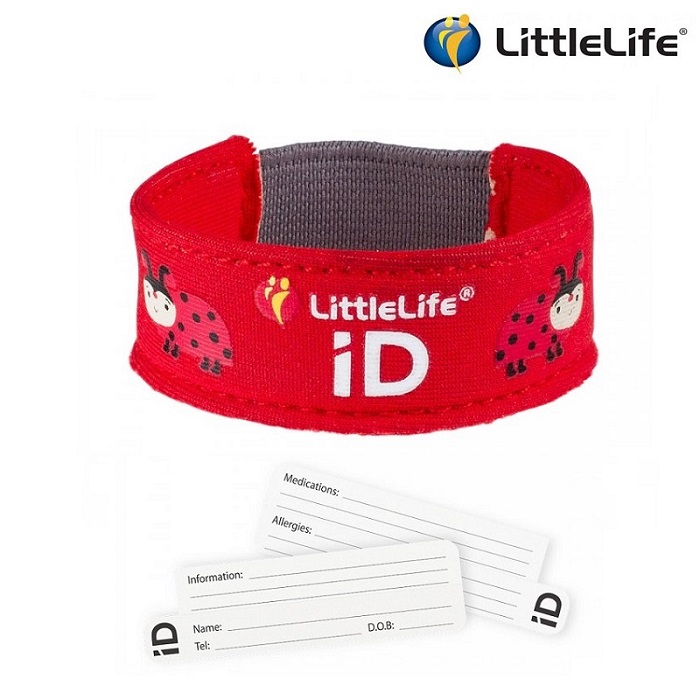Practical and well-fitting iD bracelet for children. Inside the Littlelife Safety Wristband Ladybug there is a incorporated pocket to hold small id card (two included) where contact information about parents, phone numbers and any medical information can be written. The iD bracelet is perfect when traveling with children, but also at home, for example on school trips and sport events with many people.