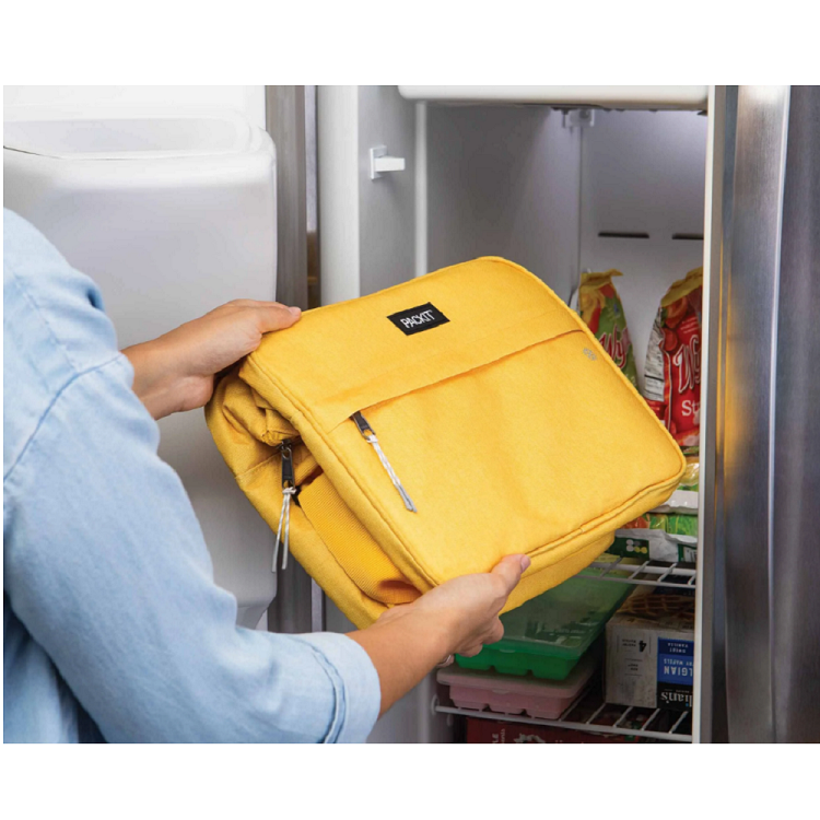 PACKiT Zuma Freezable Cooler Bag Lemonade, is a small but spacious cooler bag that keeps food and drinks fresh and cold for up to 10 hours. Fold the cooler bag – put the whole bag in the freezer - take it out when you need it. No separate cooling blocks are needed. A small cooler bag for food and drink is perfect for baby food, lunches, for the beach, travel or for a picnic.