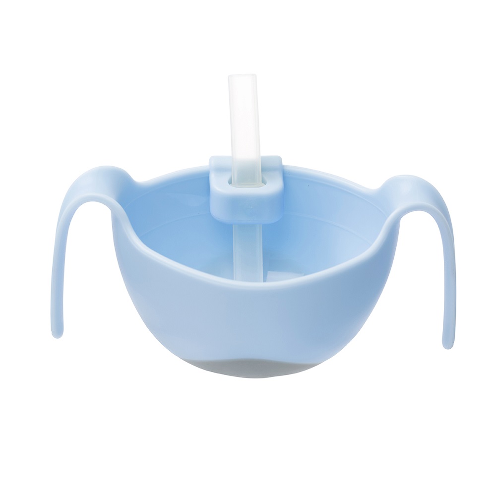 The product contains: 1 bowl with handle, 1 straw with holder, 1 snack lid and 1 lid