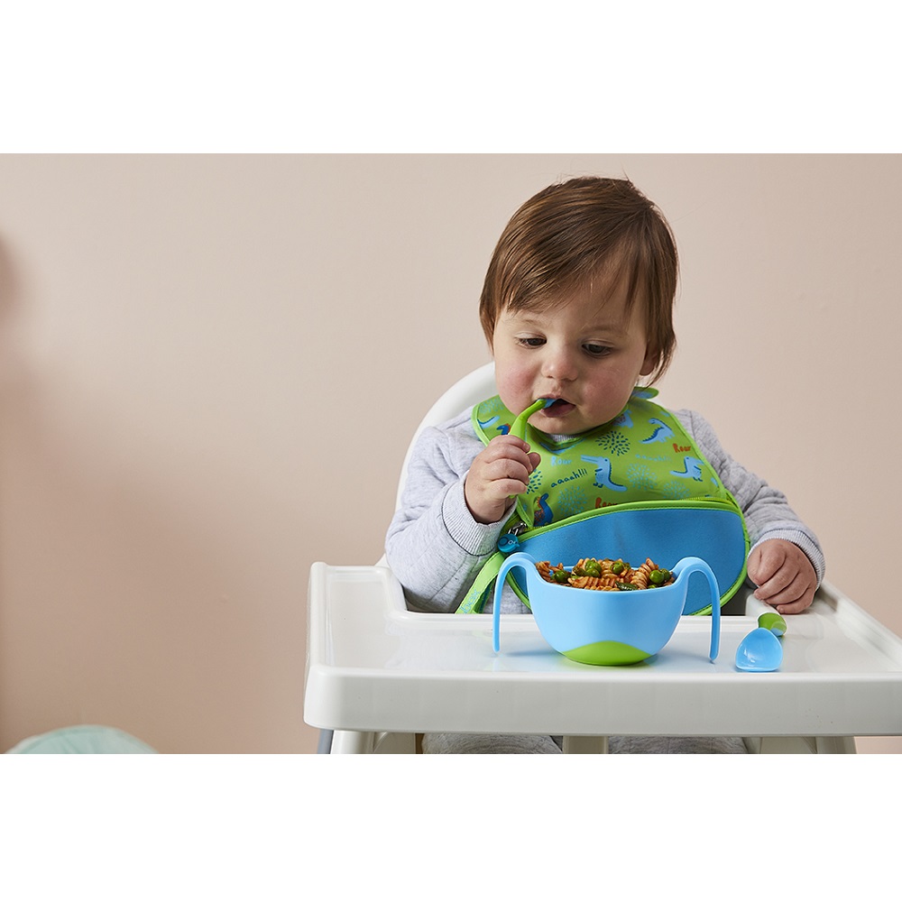 Award-winning multifunctional food bowl with straw and snack box for kids. B.box Bowl and Straw Ocean Breeze is an innovative product that can be used as a regular bowl for feeding with a spoon and fork, and with the included straw (which is attached to the edge of the bowl), the child can also drink from the bowl (eg milk or soup). B.box Bowl and Straw can also be converted into a snack box through the practical lid that keeps the snacks in the bowl from falling out, even if it is turned upside down. The bowl has grip-friendly and sturdy handles, anti-slip at the bottom and come with a tight-fitting lid.