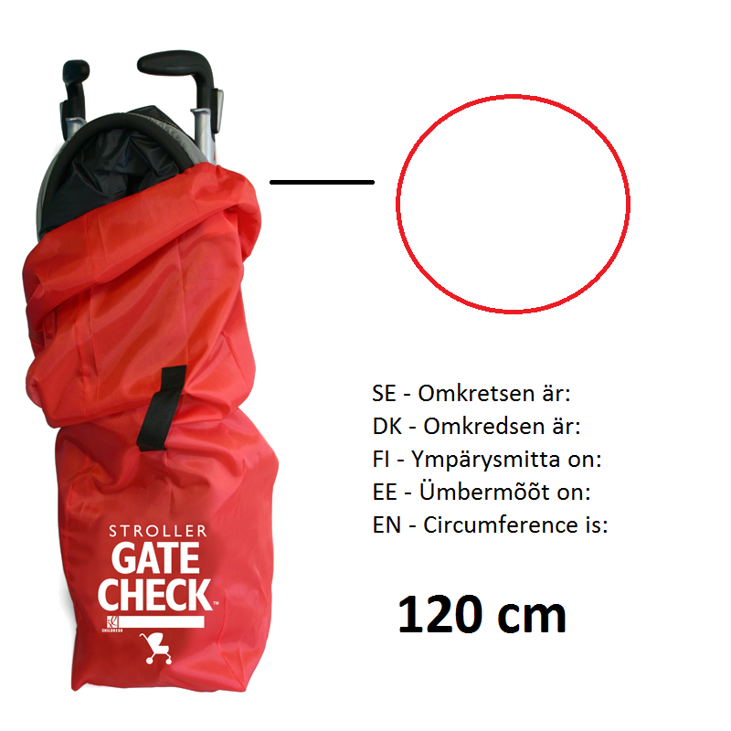 Practical transport bag for umbrella stroller and regular strollers from JL Childress. Gate Check Red transport bags for prams are packable and therefore easily fit under the pram or in hand luggage when not in use. At the gate, Gate Check is developed into a protective transport bag that protects the pram from dirt and scratches during the flight. Of course, Gate Check also works well as protection in the car or bus' cargo space and for storage of the pram.