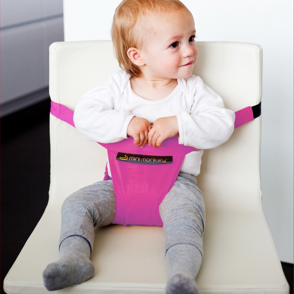 Minimonkey Minichair Pink is a safe, practical and stylish travel high chair made of fabric. After use the Minichair can be folded, which make it is easy to carry in your hand luggage, diaper bag or daypack. Minimonkey travel high chair works perfectly in restaurants, at the airport or when visiting relatives and friends.
