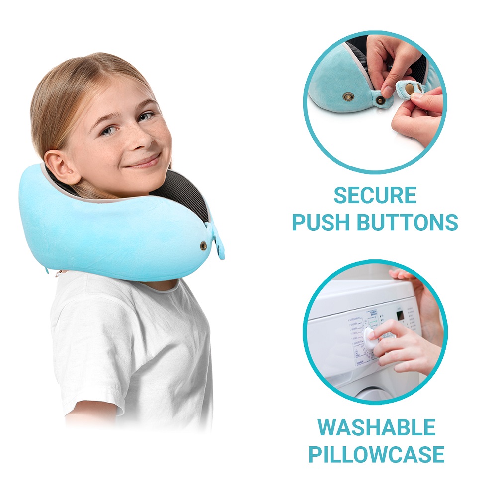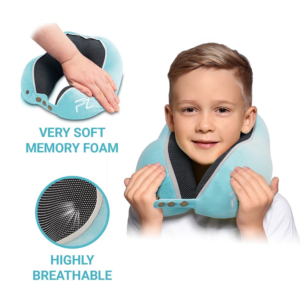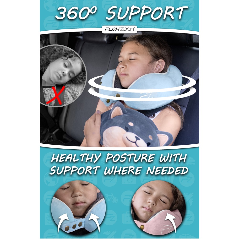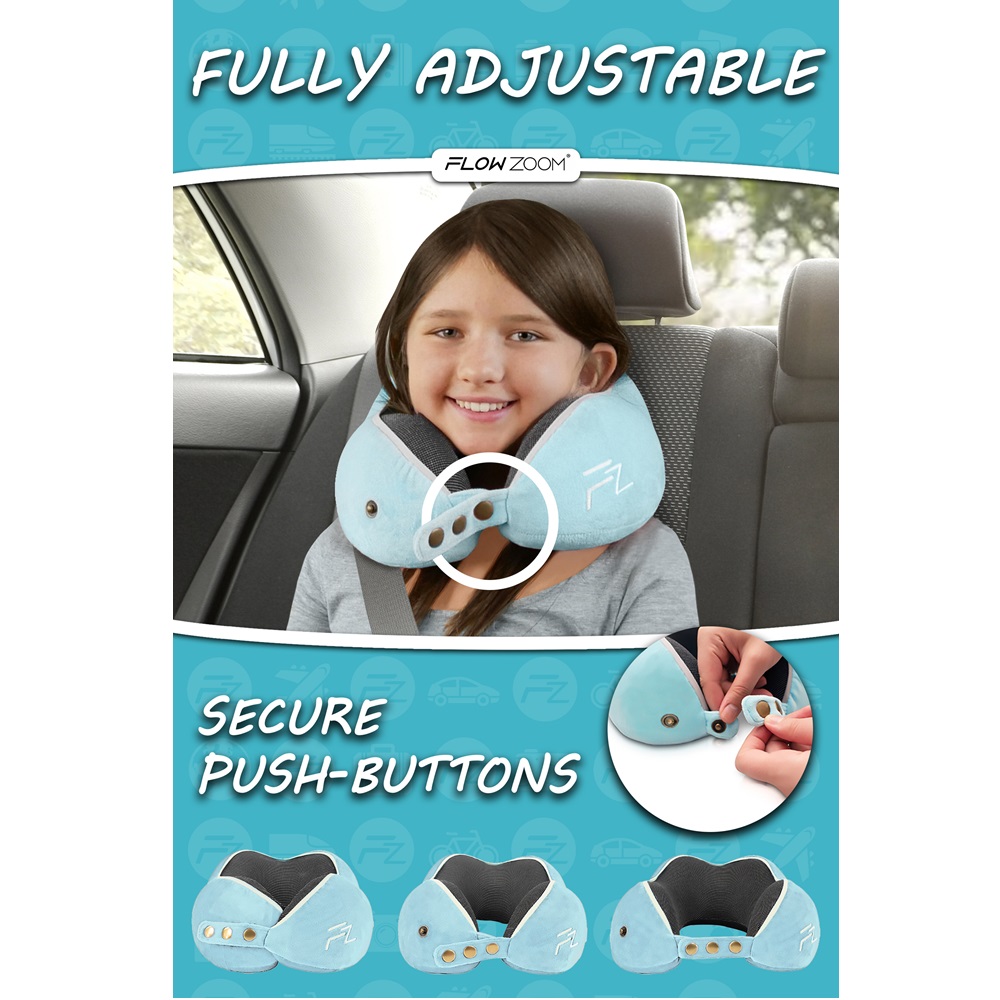 Travel Neck Pillow - Flowzoom Comfy Kids Blue Medium
