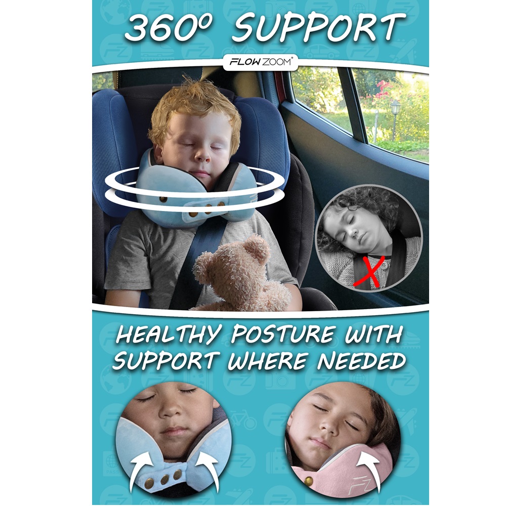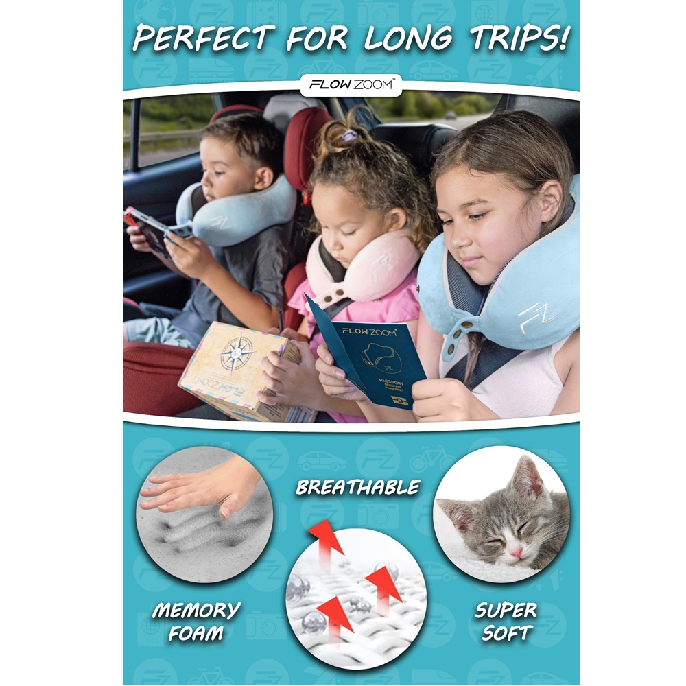 Travel Neck Pillow - Flowzoom Comfy Kids Blue Small