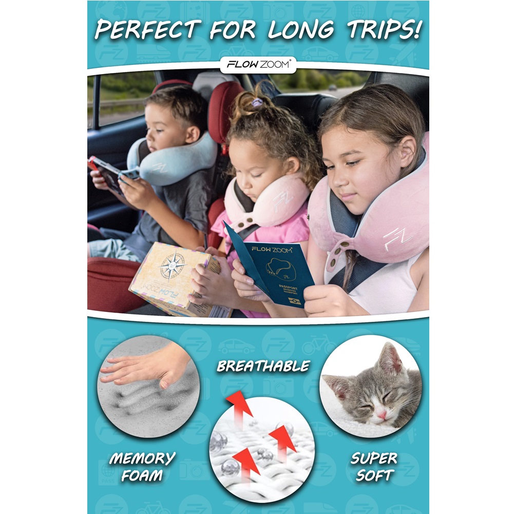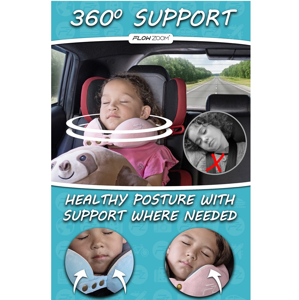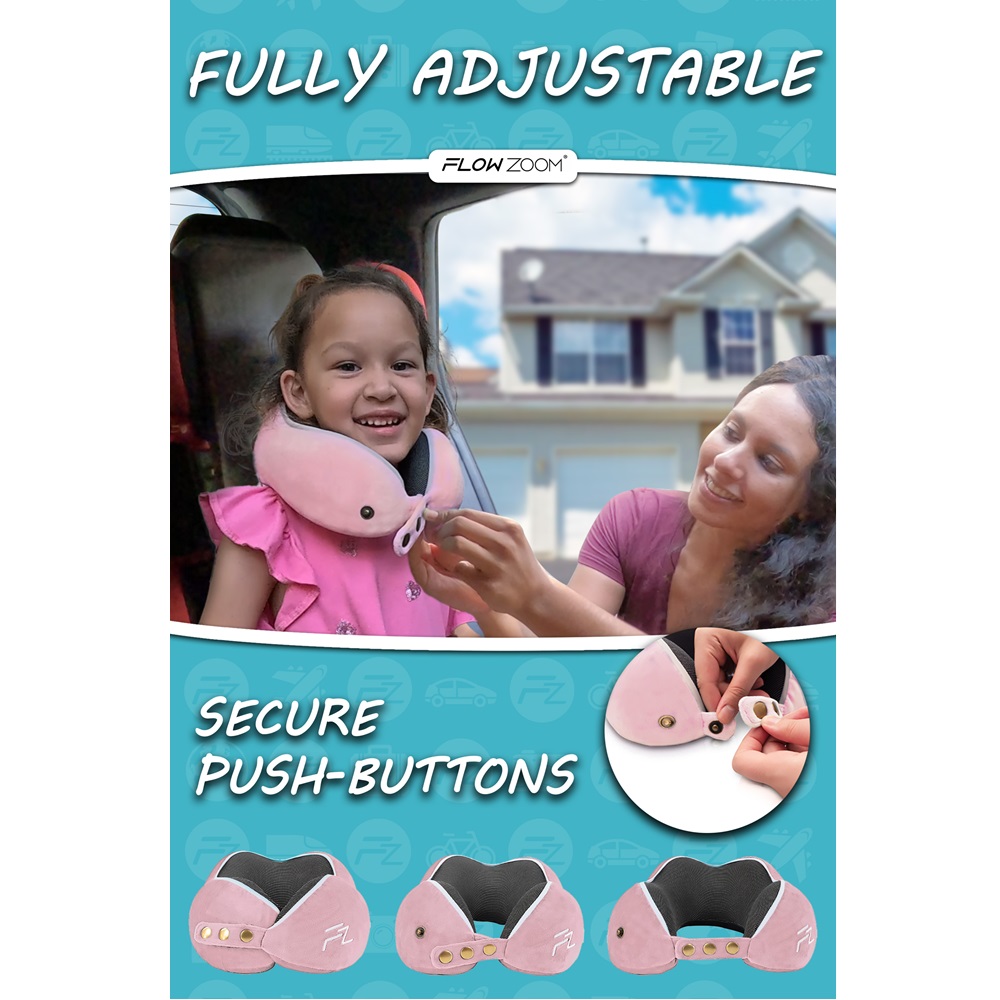Travel Neck Pillow - Flowzoom Comfy Kids Pink Small