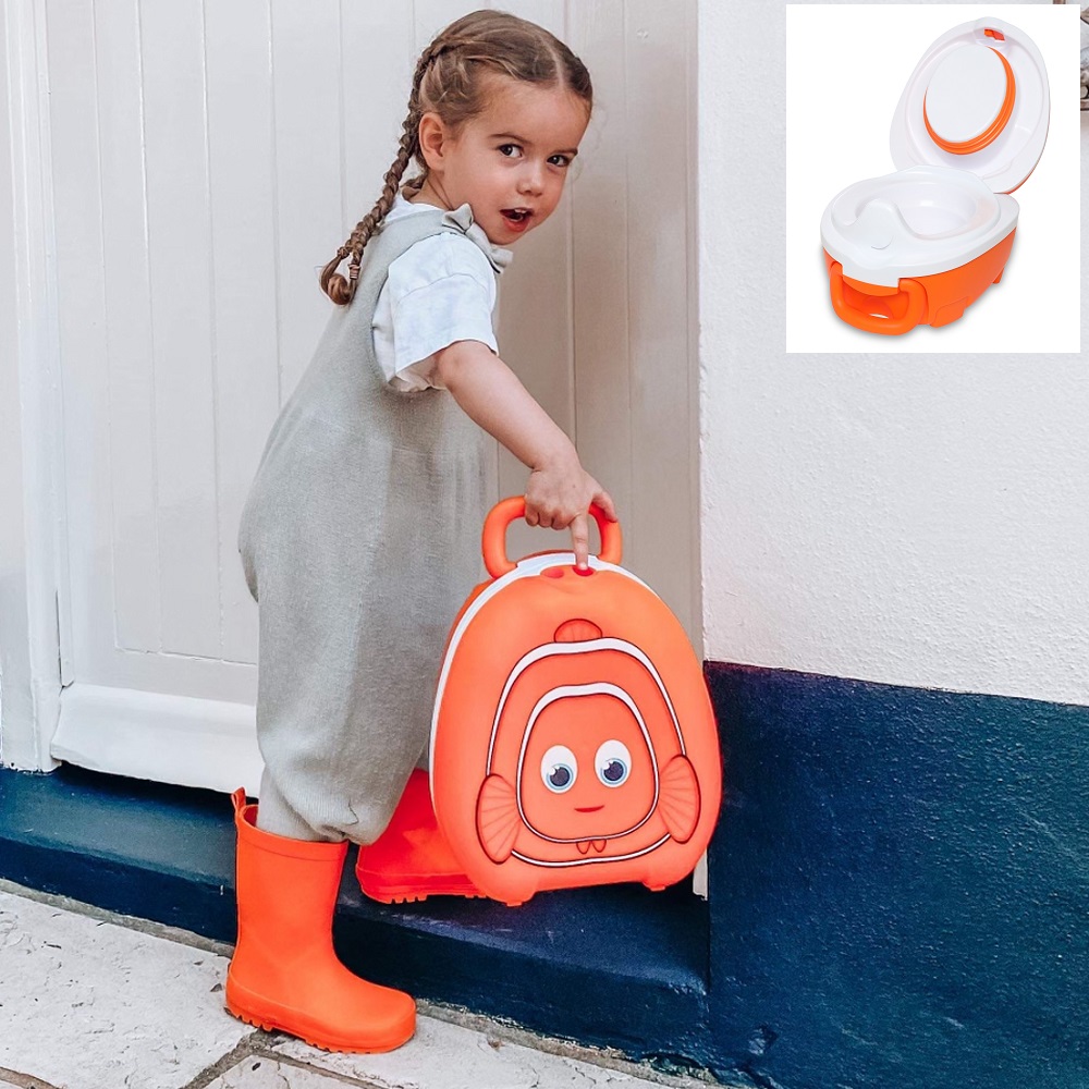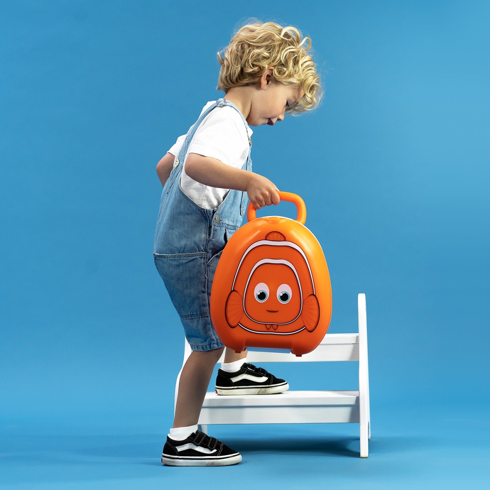 My Carry Potty Clownfish is a smart, practical and portable potty and intended both for travel and potty training. After use, the potty is closed with a tight-fitting lid and can therefore be washed at a later time. My Carry Potty is both leak-free and odor-free. The potty is easy to take with you on the trip, in the car, in the city or to places where you want to avoid public toilets.