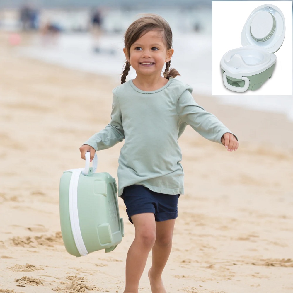 My Carry Potty Green Pastel is a smart, practical and portable potty and intended both for travel and potty training. After use, the potty is closed with a tight-fitting lid and can therefore be washed at a later time. My Carry Potty is both leak-free and odor-free. The potty is easy to take with you on the trip, in the car, in the city or to places where you want to avoid public toilets.