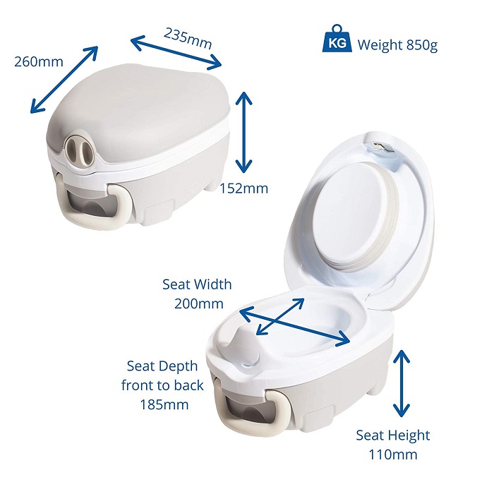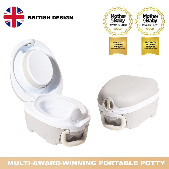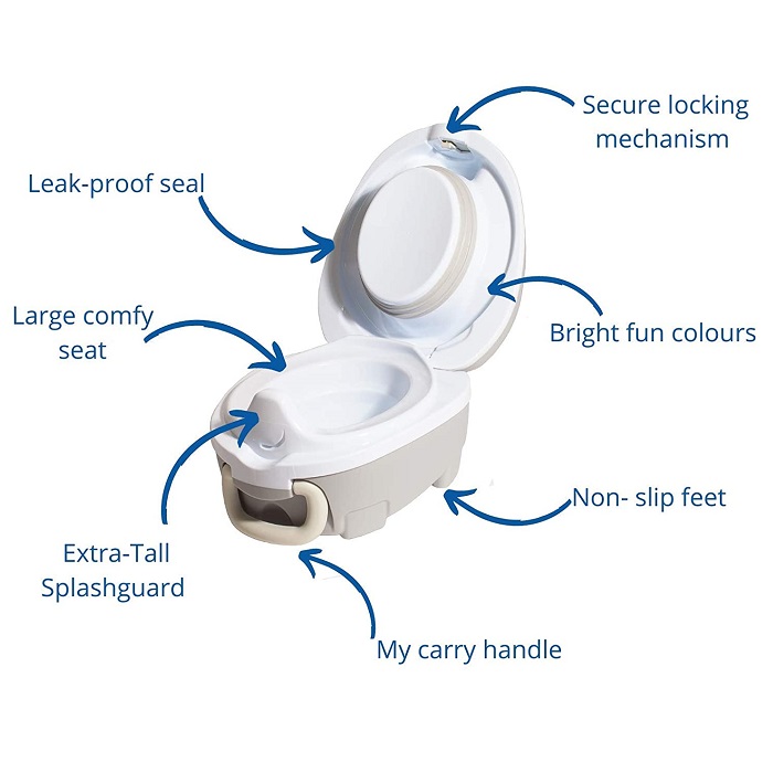 My Carry Potty Grey is a smart, practical and portable potty and intended both for travel and potty training. After use, the potty is closed with a tight-fitting lid and can therefore be washed at a later time. My Carry Potty is both leak-free and odor-free. The potty is easy to take with you on the trip, in the car, in the city or to places where you want to avoid public toilets.