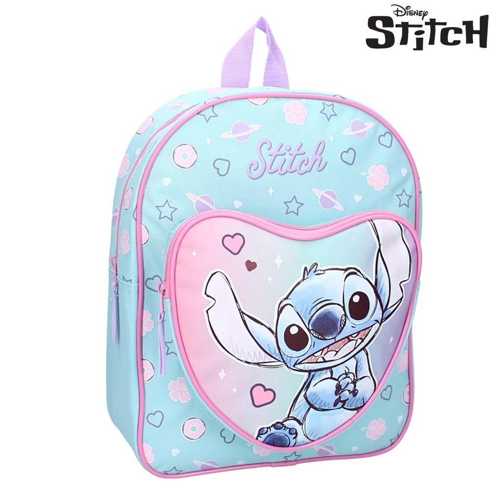 Stich Hello Cutie is a cute and functional backpack for children with motif from the popular Stich movies. The backpack has a spacious main compartment, a smaller zippered compartment on the front, adjustable padded shoulder straps, two mesh pockets on the sides and a practical carrying handle. Perfect for daycare, pre-school and visits to friends and a weekend at granny's.