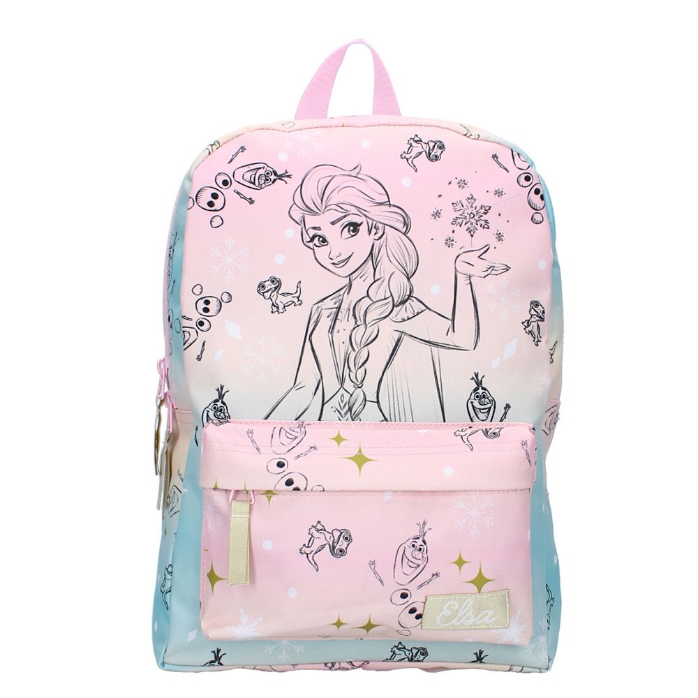 Beautiful, practical and durable backpack for children in a nice design with Elsa from the Frozen movies. The backpack Feeling Special has a solid main compartment, a pocket on the front of the backpack, adjustable and padded shoulder straps and carrying handles at the top.