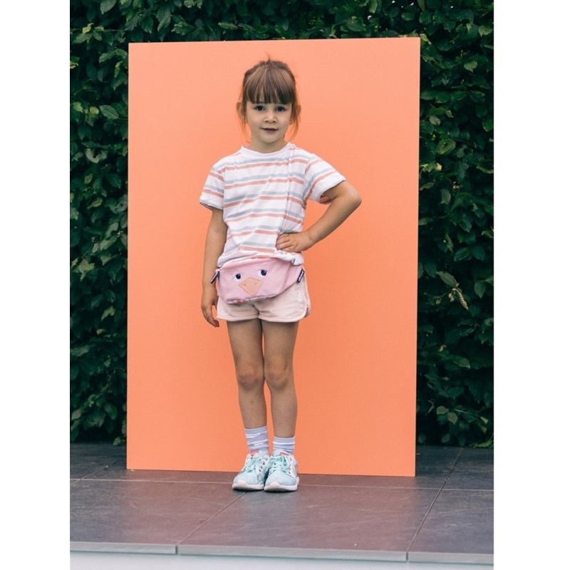 Practical fanny pack for children for better control of phone, keys, money and small items. Les Deglingos Bum Bag Ostrich, has a spacious compartment that closes with a zipper. The waist bag can be carried in two ways, fastened around the waist or across the shoulder. The Les Deglingos fanny pack is adapted to the child's size with an adjustable belt with a clip buckle. Use the waist bag when traveling for snacks and small items or at school for mobile, keys and money.