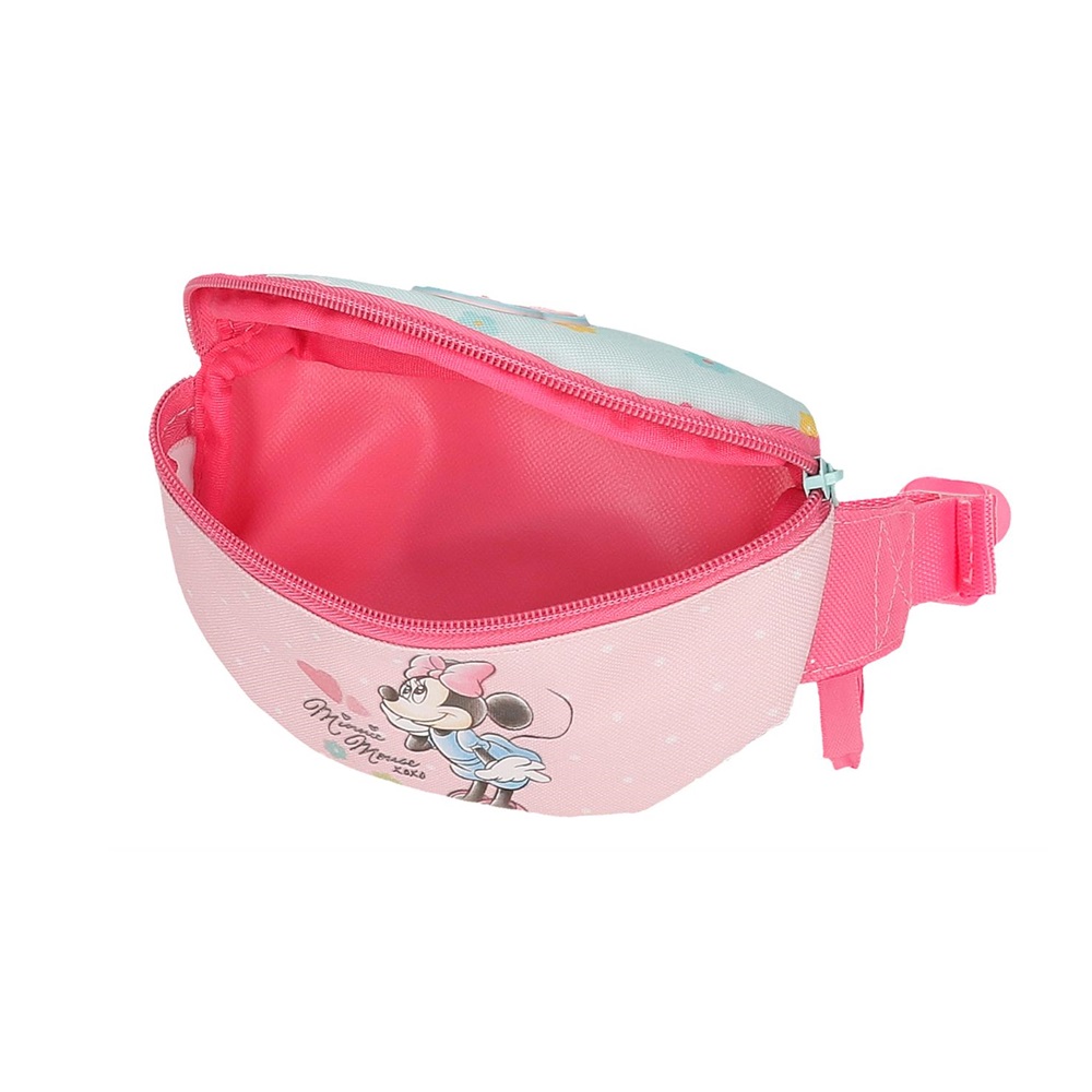 Practical and cute fanny pack for children for better control of phone, keys, money and small items. The Minnie Mouse Imagine waist bag has a spacious compartment that closes with a zipper. The waist bag can be carried in two ways, fastened around the waist or across the shoulder. The Minnie Mouse fanny pack is adapted to the child's size with an adjustable belt with a clip buckle. Use the waist bag when traveling for snacks and small items or at school for mobile, keys and money.