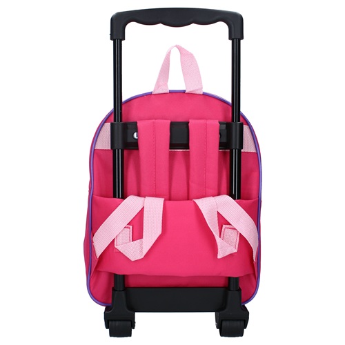 A cute suitcase for younger children with motifs from the movies about Peppa Pig made in 3D (the image sticks out from the front of the bag). The Friends Around Town suitcase has a telescopic handle, carrying handle at the top, two wheels and support legs at the front so that the suitcase can be placed vertically. On the back of the suitcase there are padded and adjustable shoulder straps so that it can be worn as a backpack too. The main compartment of the suitcase holds toys, teddy bears, snacks and other things that will be taken on the trip. The children's suitcase Peppa Pig Friends Around Town fits well both as hand luggage on the plane and as a small gadget bag to take with you when visiting family and friends.