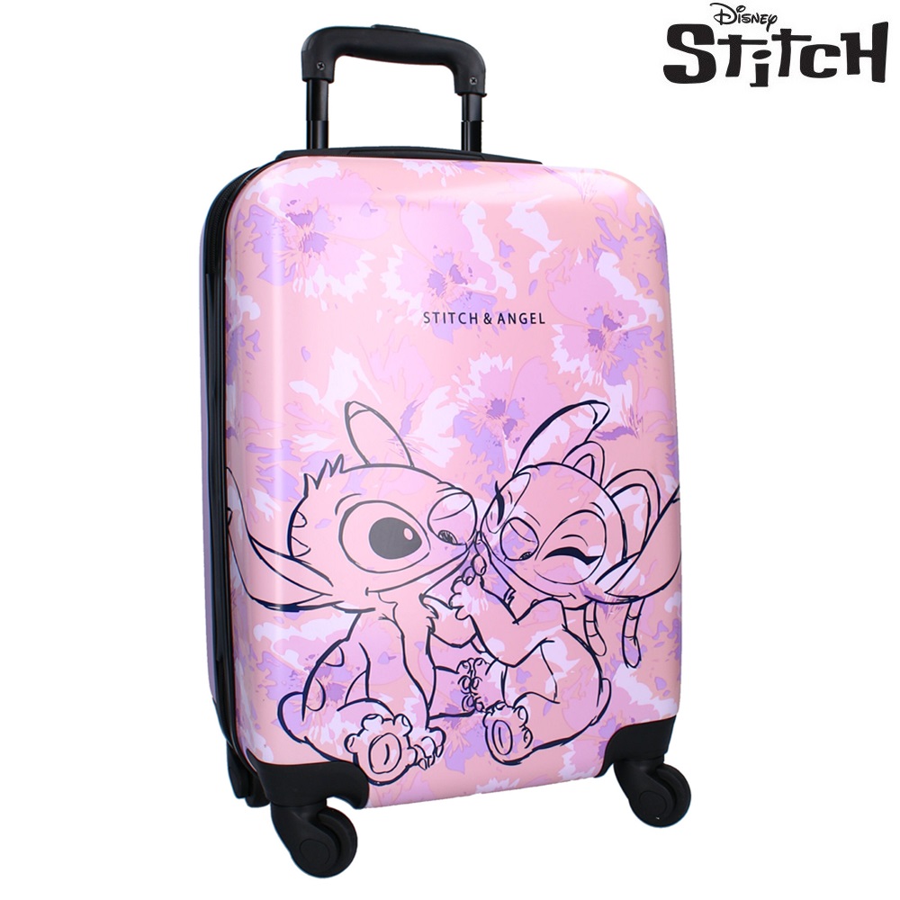 The Stitch & Angel suitcase is a cute and functional suitcase for children made of stable and durable ABS molded plastic (see below). The suitcase, which is 53 x 35 x 23 cm, has a total packing space of 31.8 liters divided into two compartments. One compartment has straps while the other side has a cover that closes with a zipper. Stitch & Angel has a telescopic handle, a carrying handle and four quiet wheels that spin 360 degrees for smooth driving, for example at airports.