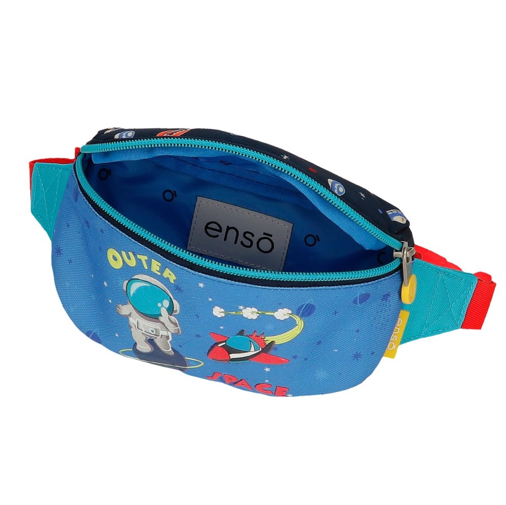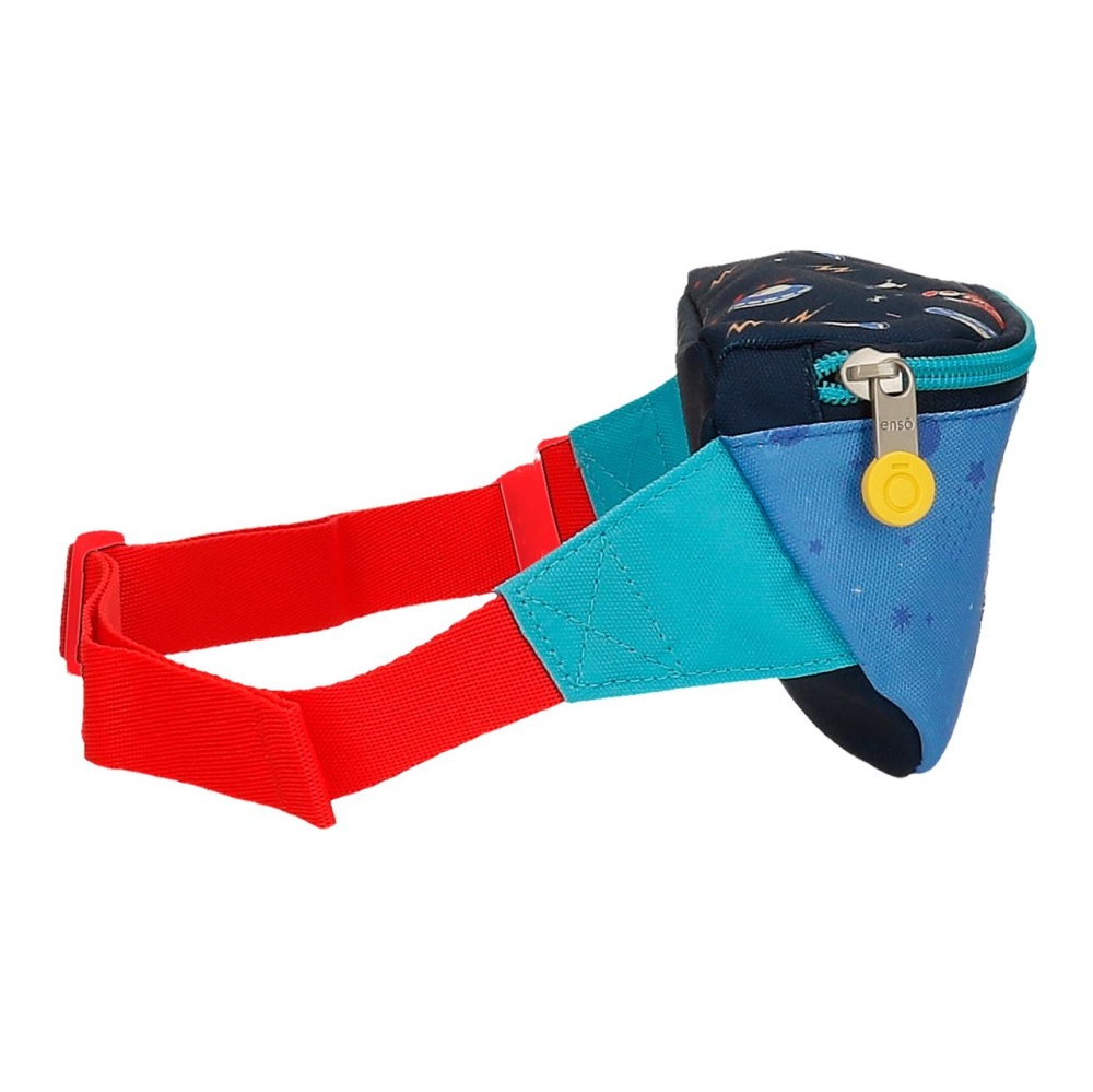 Enso Outer Space is a cute and functional waist bag made of water-repellent material. The waist bag holds all the child's things that need to be taken on the trip or to school, such as a mobile phone, money, keys and small items. The waist bag has a spacious compartment that closes with a zipper. The belt can be adjusted in length, to fit the child's waist but also so that the child can carry the bag over the shoulder.