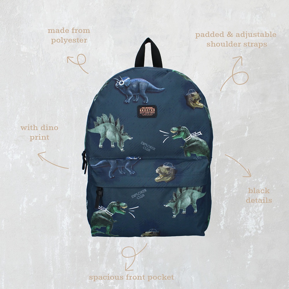 Skooter Explorer Club is a stylish, durable and functional backpack for children made in a nice design. The backpack has a spacious main compartment, a smaller pocket on the front of the backpack, adjustable and padded shoulder straps and a carrying handle.