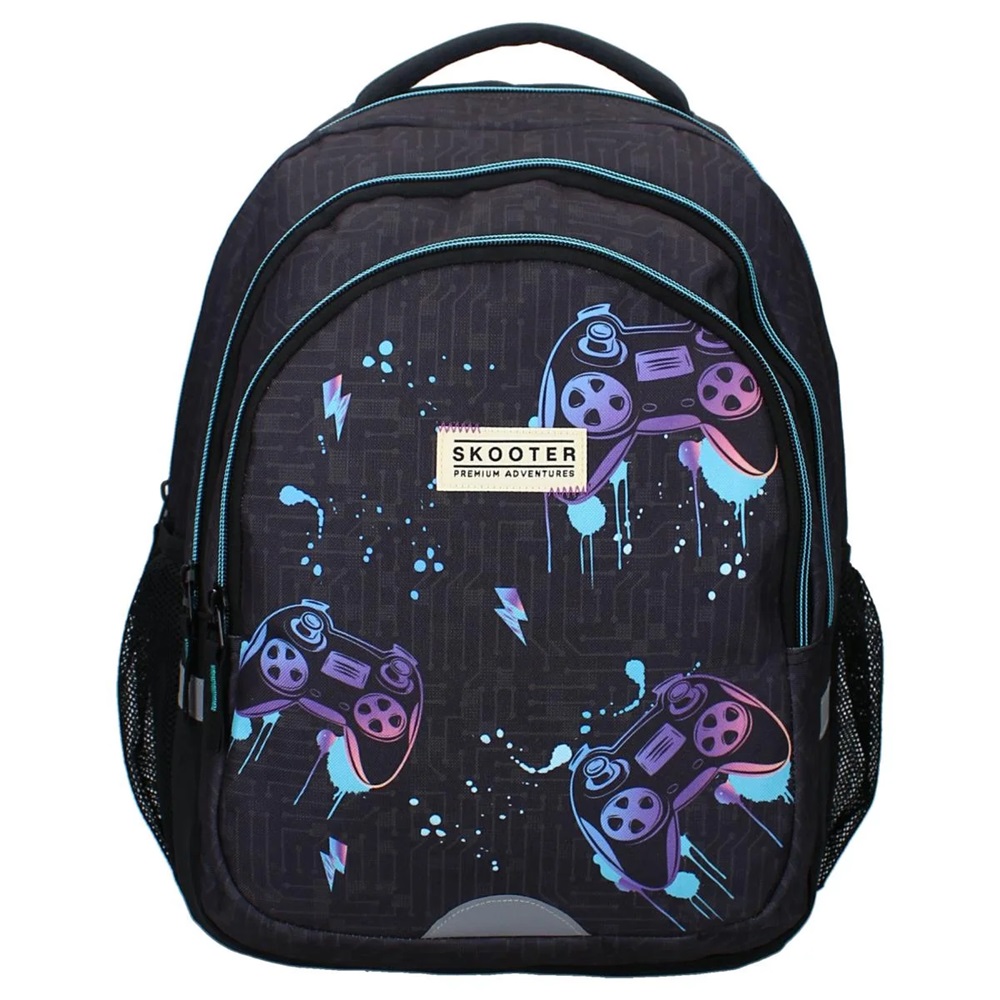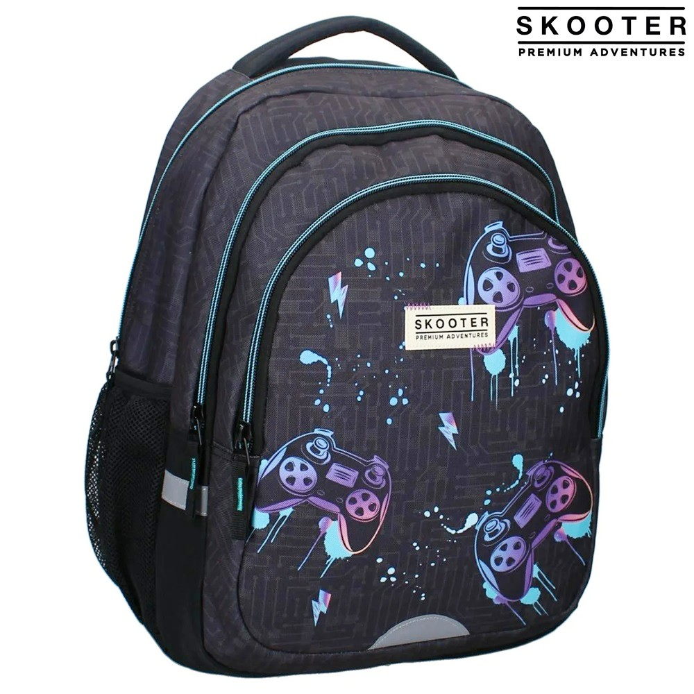Skooter Game Face On is a large, spacious and stylish backpack for slightly older children made in a tough design. The backpack is made of water-repellent polyester and has a total of 34.8 liters of packing space. Skooter Game Face On has padded and adjustable shoulder straps, a carrying handle, a large spacious main compartment, two additional compartments and mesh bottle holders on the sides. The backpack is suitable both as a school bag and for travel.