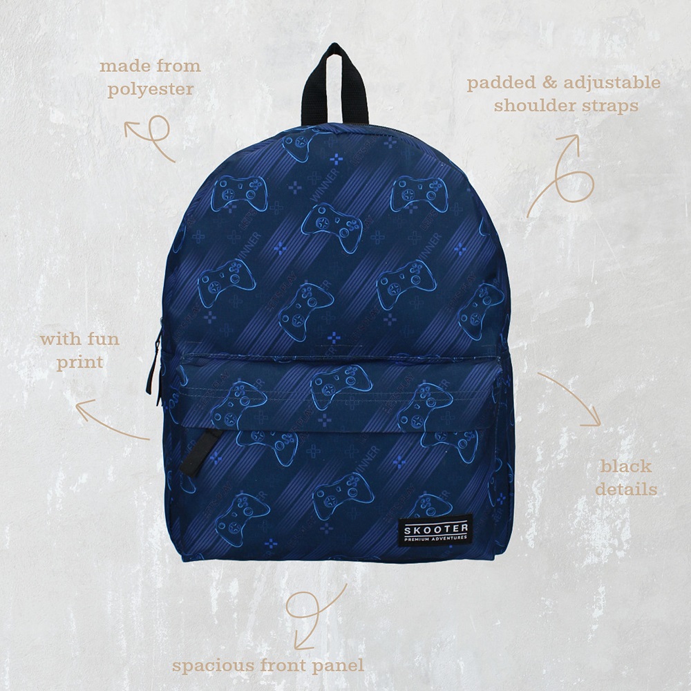 Skooter Gamers Unite Blue is a stylish, durable and functional backpack for children made in a nice design. The backpack has a spacious main compartment, a smaller pocket on the front of the backpack, adjustable and padded shoulder straps and a carrying handle.