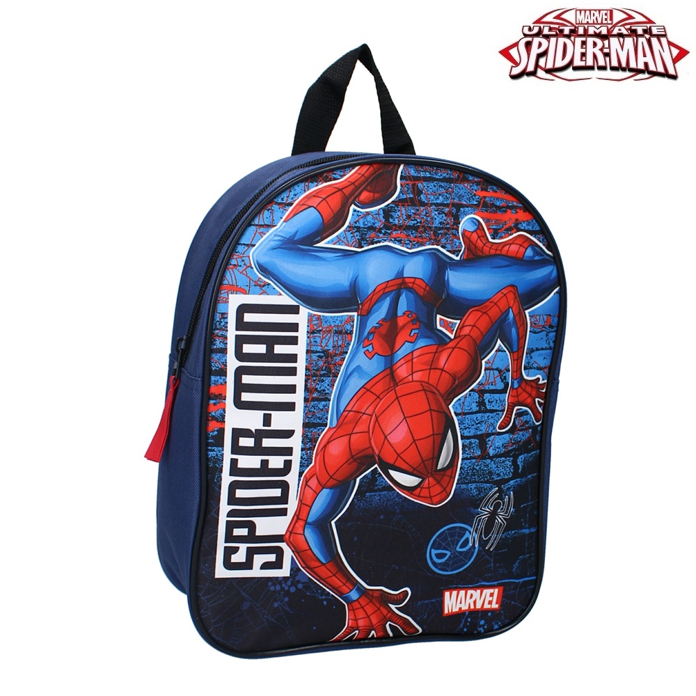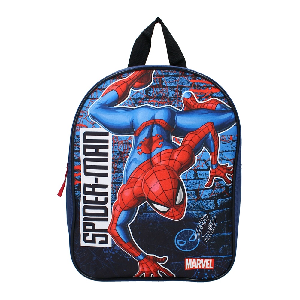 Cool backpack for small children with Spiderman motif. The Spiderman Beyond Amazing backpack has a main compartment that closes with a zipper, adjustable carrying straps and has a carrying handle at the top. The backpack fits toys, teddy bears, snacks and other things that are coming along to the trip or to kindergarten.